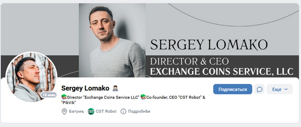Автор бота – Сергей Ломако, сооснователь проекта CGT Robot PikVik. Также он известен в качестве руководителям криптовалютного обменника Exchange Coins Service LLC.