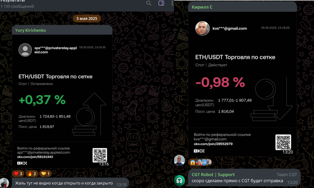 В официальной группе в Телеграмме есть раздел для публикации результатов работы CGT. Пользователи могут выкладывать скрины, писать комментарии, касающиеся бота.