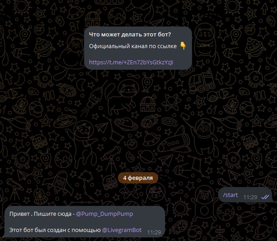 Телеграмм бот Чайнетик (Chainetic) начал работу относительно недавно. Он используется в качестве вспомогательного инструмента для автоматизированной торговли по методу Pump&Dump. Запуск этого приложения позволяет получить доход не только подписчикам, но и создателям мини-приложения.