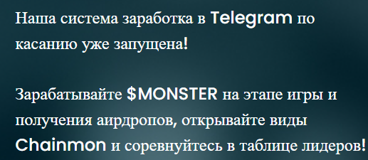 Владелец проекта заявляет, что с помощью Chainmonsters клиенту доступен заработок криптовалюты MONSTER. Однако на момент написания этого материала такая возможность отсутствует. Кроме того, мы не знаем, в каком объеме игрок сможет получать криптовалюту и что для этого ему нужно сделать.