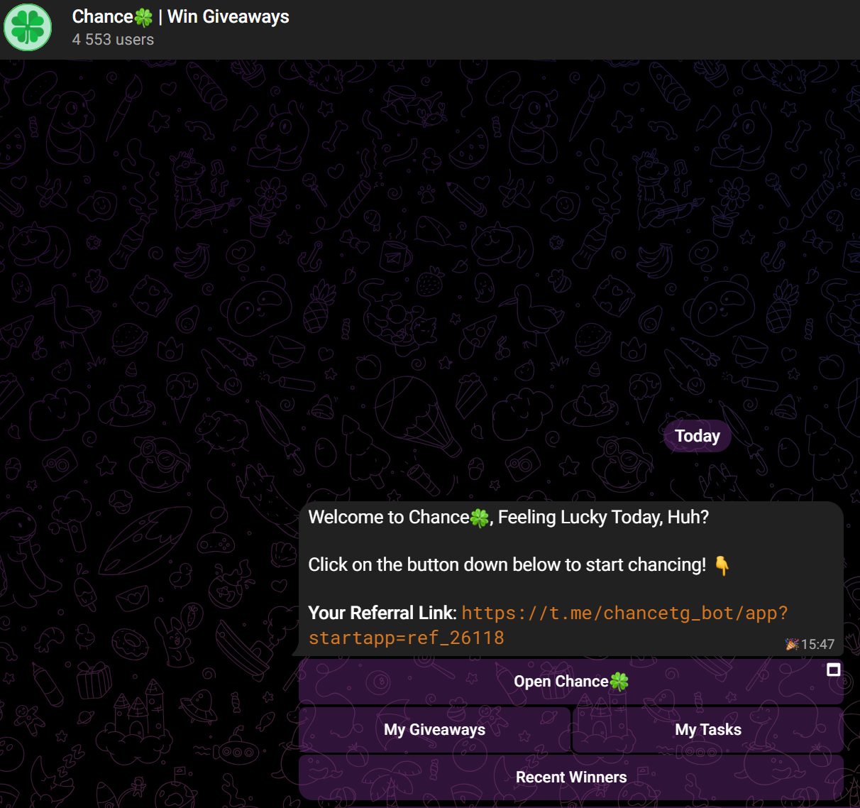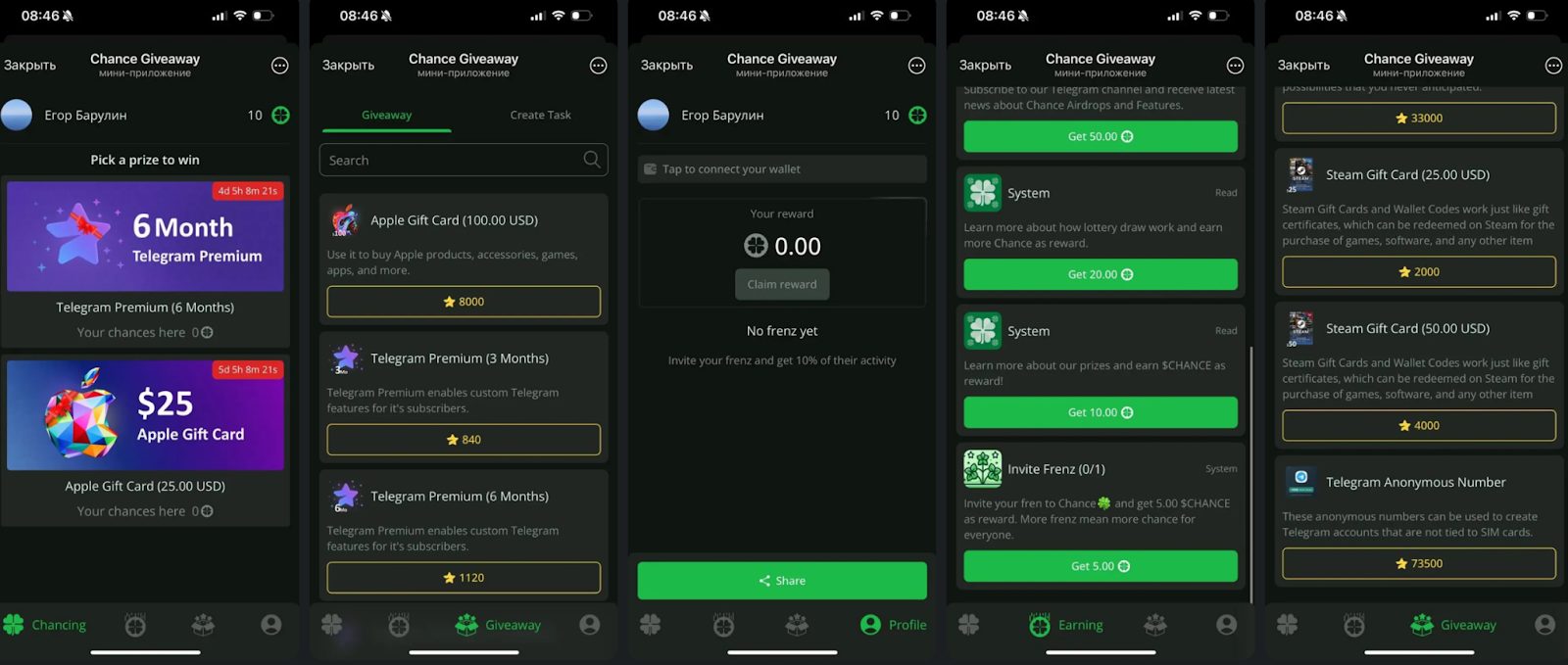 Обзор приложения Chance Win Giveaways: отзывы о раздаче подарков, можно ли заработать в Chancetg bot