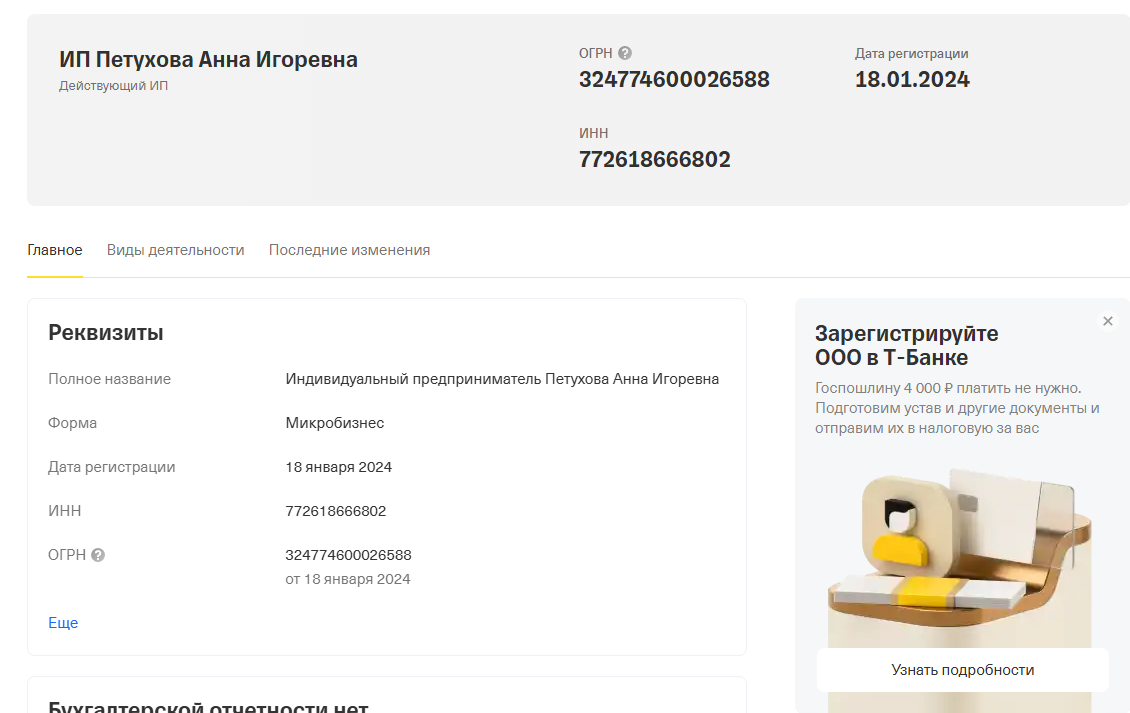 Но ИП, указанный в футере, был зарегистрирован только в начале 2024 года: