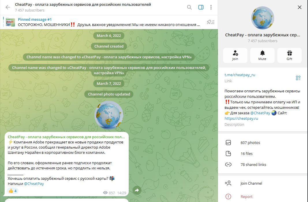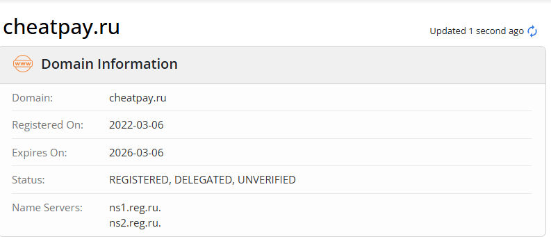 Сервис, по всей видимости, стал одним из первых, кто начал предоставлять услуги по оплате зарубежных сервисов. Дата регистрации домена cheatpay ru пришлась на начало марта 2022 года.