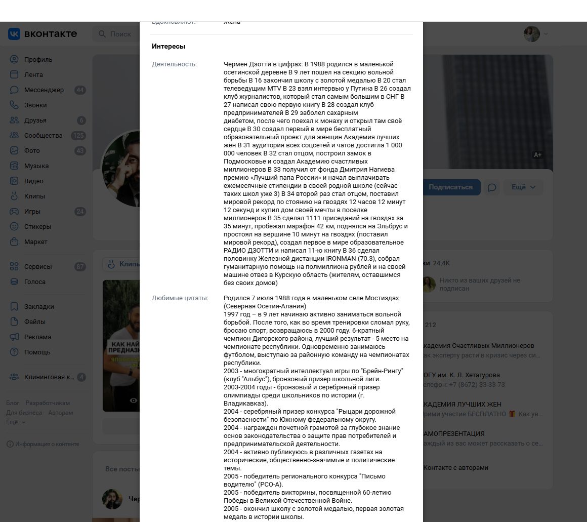 Те, кто пытается найти разоблачение Чермена Дзотти, могут обнаружить всю подробную информацию в его паблике Вконтакте и других открытых источниках. Несколько направлений деятельности можно выделить отдельно. Например, к 04 марта 2026 года специалист уже создал более 40 бизнес-проектов и не собирается на этом останавливаться. Некоторые организации – глянцевый журнал, PR-агентство, радио и апарт-отель.