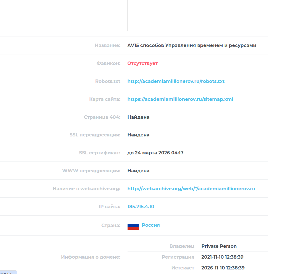 У «Академии счастливых миллионеров» есть свой сайт Academiamillionerov ru. Домен зарегистрирован в 2021 году, это совпадает со сроком существования проекта.