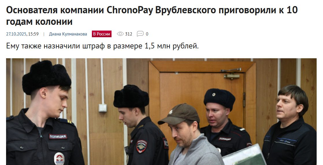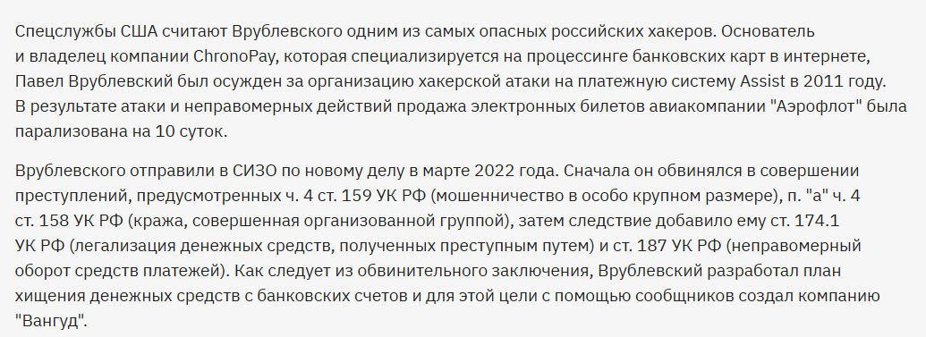 Павел Врублевский – основатель «Хронопей». Он запустил один из первых сервисов электронных платежей в России. Работал с крупным бизнесом. Развивал рынок e-commerce в стране. Но скандалов хватало. В 2011 году дело о DDoS-атаке на конкурента. В 2013 осудили за взлом системы Аэрофлота.
