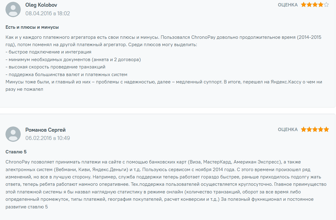 Положительные отзывы о «Хронопей» хвалили стабильность процессинга. Владельцы интернет-магазинов отмечали надежную работу после перехода из Робокассы и РБК Мани, где были постоянные сбои. Главным преимуществом называли детальную статистику онлайн – транзакции, обороты, география покупателей, конверсия.