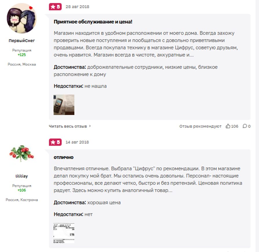 В основном, отзывы на «Цифрус» положительные. Пользователи довольны качеством товаров и уровнем обслуживания. Они отмечают эффективную работу менеджеров.