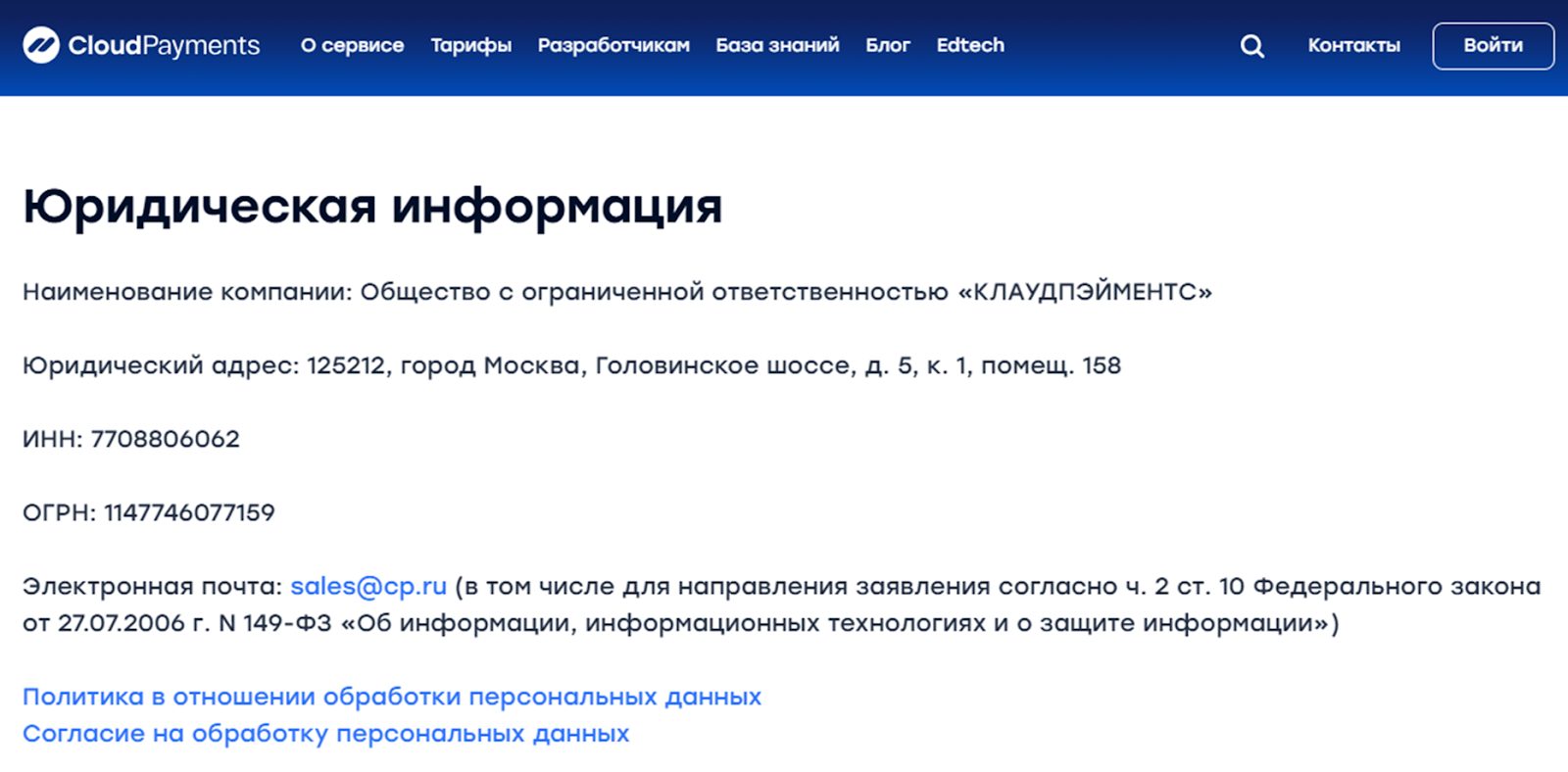 Проект оказывает услуги в качестве юридического лица ООО «Клаудпэйментс». Реквизиты компании указаны в разделе Ceo cp ru.