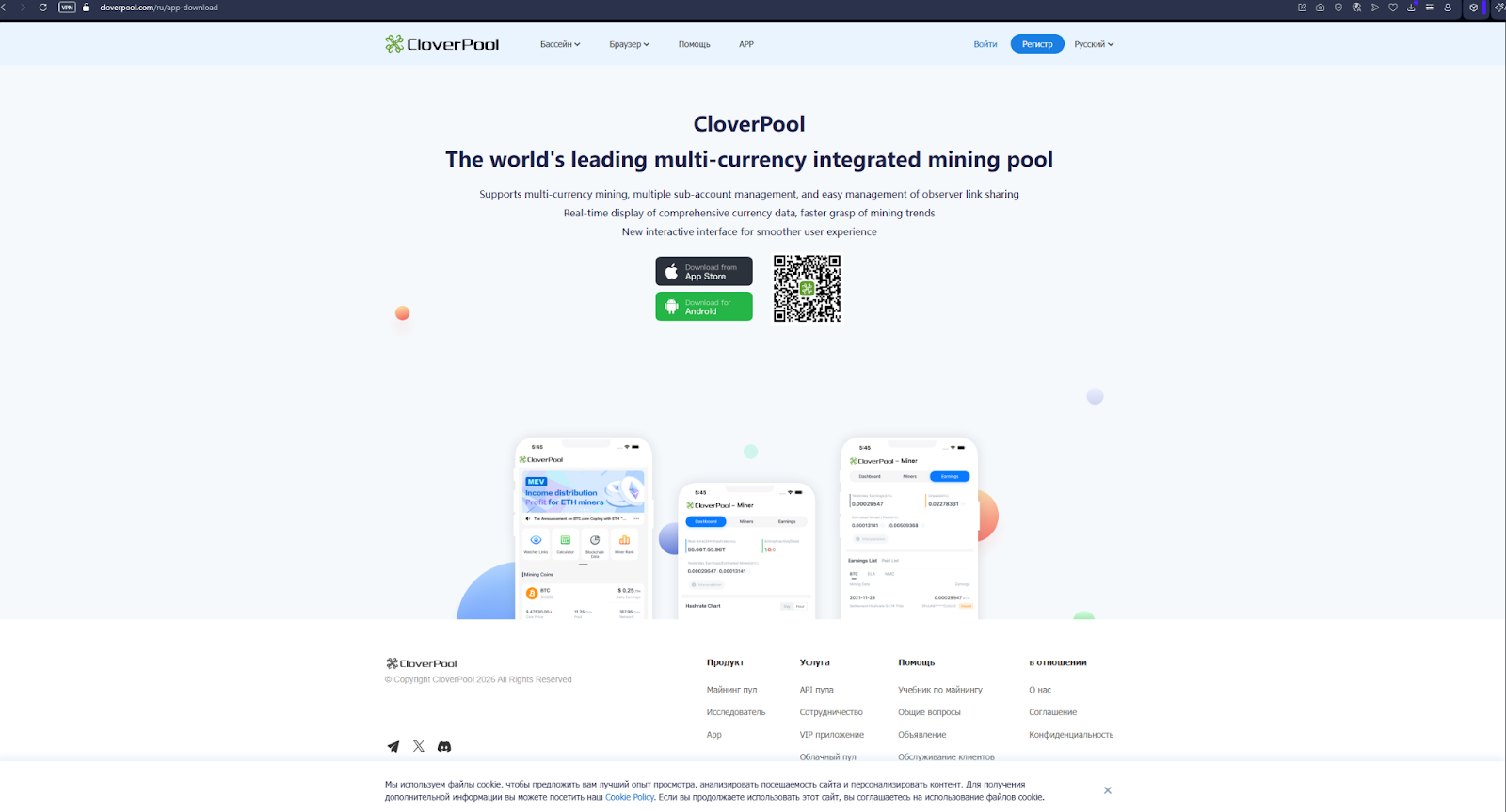 Проект поддерживает биткоин, эфириум, лайткоин и ряд других монет. Выплаты рассчитываются по схемам Fpps, Pps и Pplns. На сайте и в мобильных приложениях CloverPool Trustworthy Pool для iOS и «CloverPool Мультивалютный пул» для Android отображаются данные о хэшрейте в реальном времени, история блоков и график доходности. При этом комиссия фиксирована на уровне, сопоставимом с конкурентами. Также есть облачные тарифы для аренды мощности, раздел корпоративного обслуживания и инструменты для деления счетов на субаккаунты.