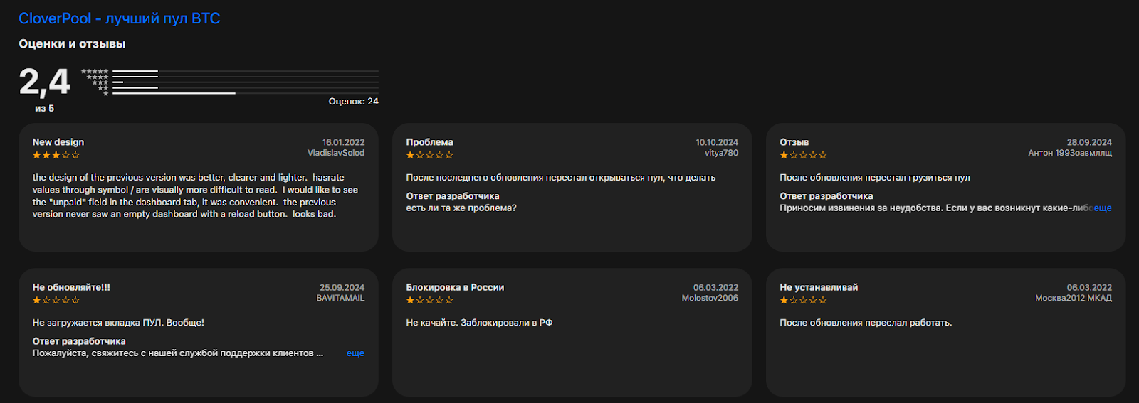 В то же время о Clover Pool есть негативные отзывы о длительном входе при двухфакторной авторизации и блокировке отдельных адресов IP. Часть аудитории просит разработчиков вернуть старую схему навигации и добавить конвертацию дохода в рубли. Замечания по качеству русскоязычной локализации и скорости поддержки звучат регулярно, особенно от новичков, которые впервые настраивают оборудование.