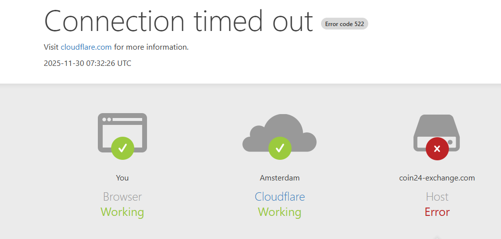 Хорошо хоть не успел пополнить счёт на Coin24exchange, а то биржа взялась и схлопнулась. Только зарегал аккаунт, начал думать над пополнением, а тут смотрю сайт уже не открывается и выбивает ошибку. Не повезло тем, кто залил сюда бабки.