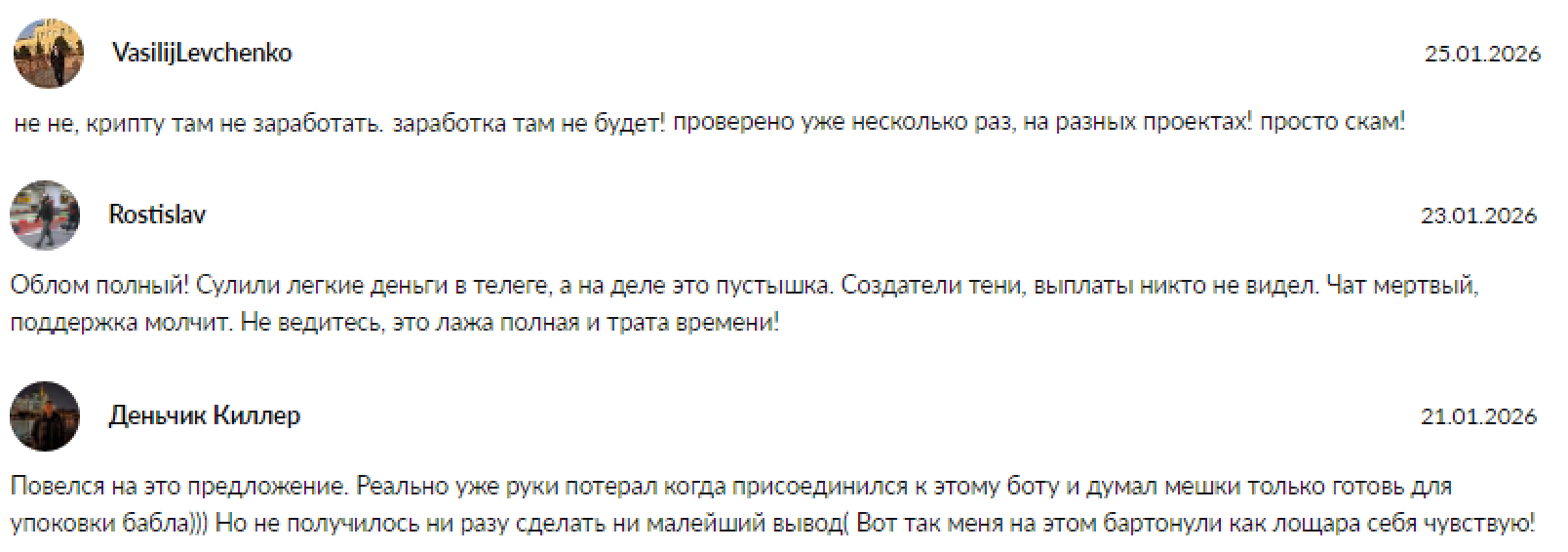 В интернете граждане о работе скам-бота оставляют негативные отклики.