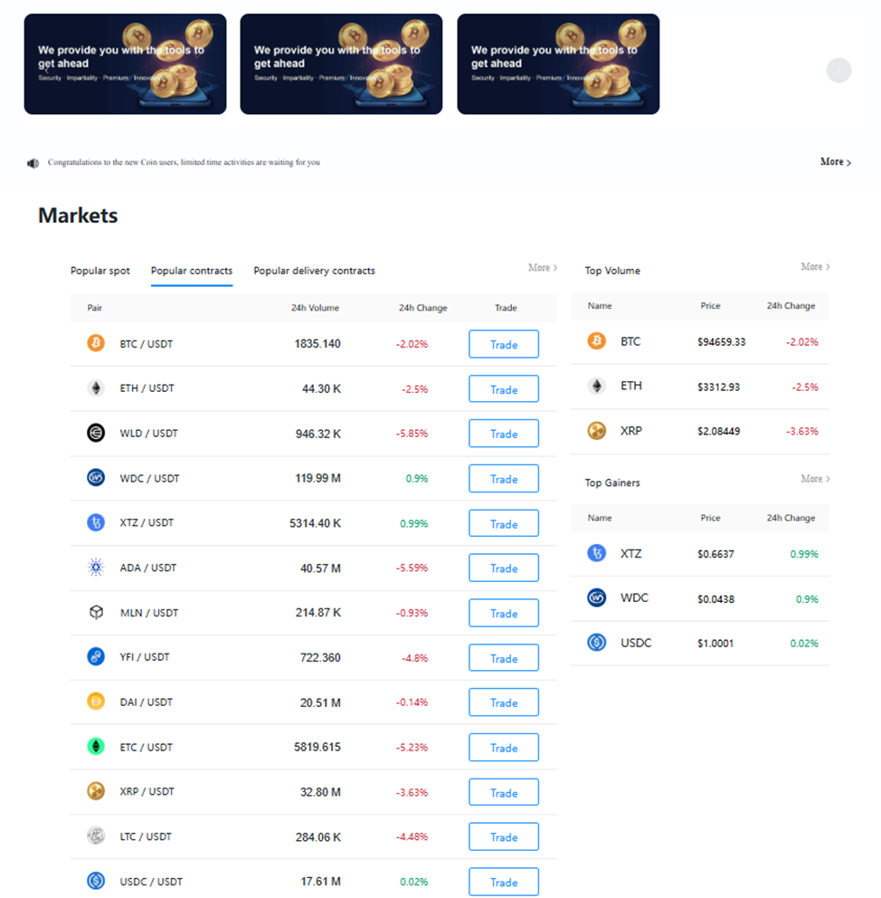 Coingct Org – это платформа с минимумом информации: сплошная, ничем не подтвержденная, реклама собственных достоинств с обширным перечнем криптовалютных пар. Разработчики указали, что начало деятельности биржи в 2025 году. Далее изучим доступную информацию и проанализируем шансы заработать на этой бирже.