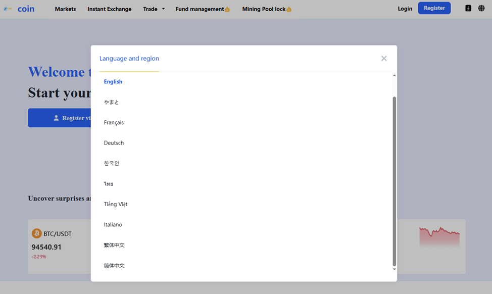 Основной язык ресурса – английский, из европейских присутствуют французский, немецкий и итальянский. Есть масса восточных, включая японский, корейский, тайский, вьетнамский и диалекты китайского. Русского языка среди поддерживаемых сайтом Coingct Org нет, следовательно, на граждан РФ ресурс не рассчитан и лицензии Банка России у компании быть не может.