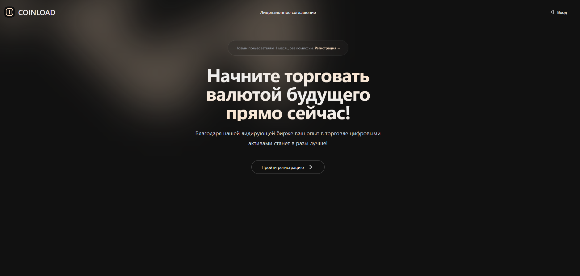 Веб-сайт Coinload.World начал свою работу 19 марта 2026 года. Выглядит он как шаблонная брокерская площадка с минимумом информации в свободном доступе. Для ее получения необходимо зарегистрироваться, предоставив личные данные неизвестным админам.