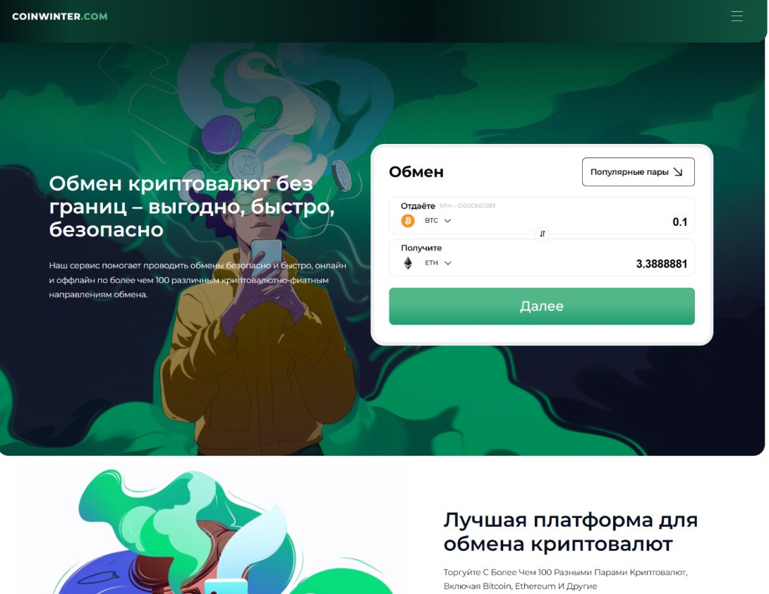 На сайте CoinWinter предлагали обменивать криптовалюту без возможности вывода активов в фиат. Сервис был анонимным, что позволяло пользователю заказать транзакцию без регистрации и указания личных данных.