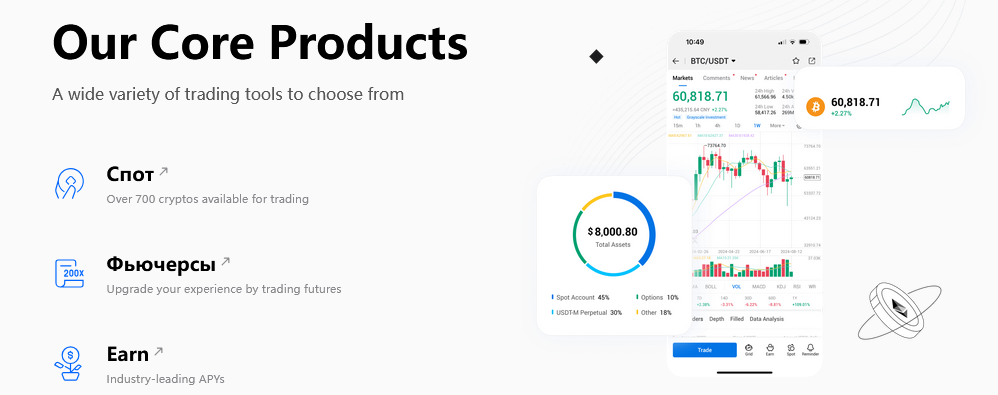 • подключение к рынкам для торговли криптой;