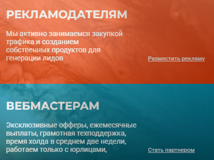 Фирма предлагает экспертам по привлечению потенциальных покупателей работать с offers в сфере кредитования, ипотеки, страхования, Форекса, недвижимости, HR, акций, развлечений и других направленностей.