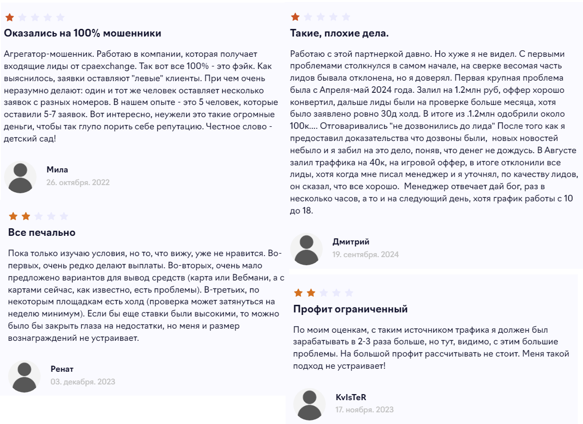 Мы решили найти в интернете информацию о том, платит ли в реальности платформа Cpaexchange деньги партнерам, и изучить отзывы участников этого проекта. В сети мы встретили много негативных откликов от пользователей.