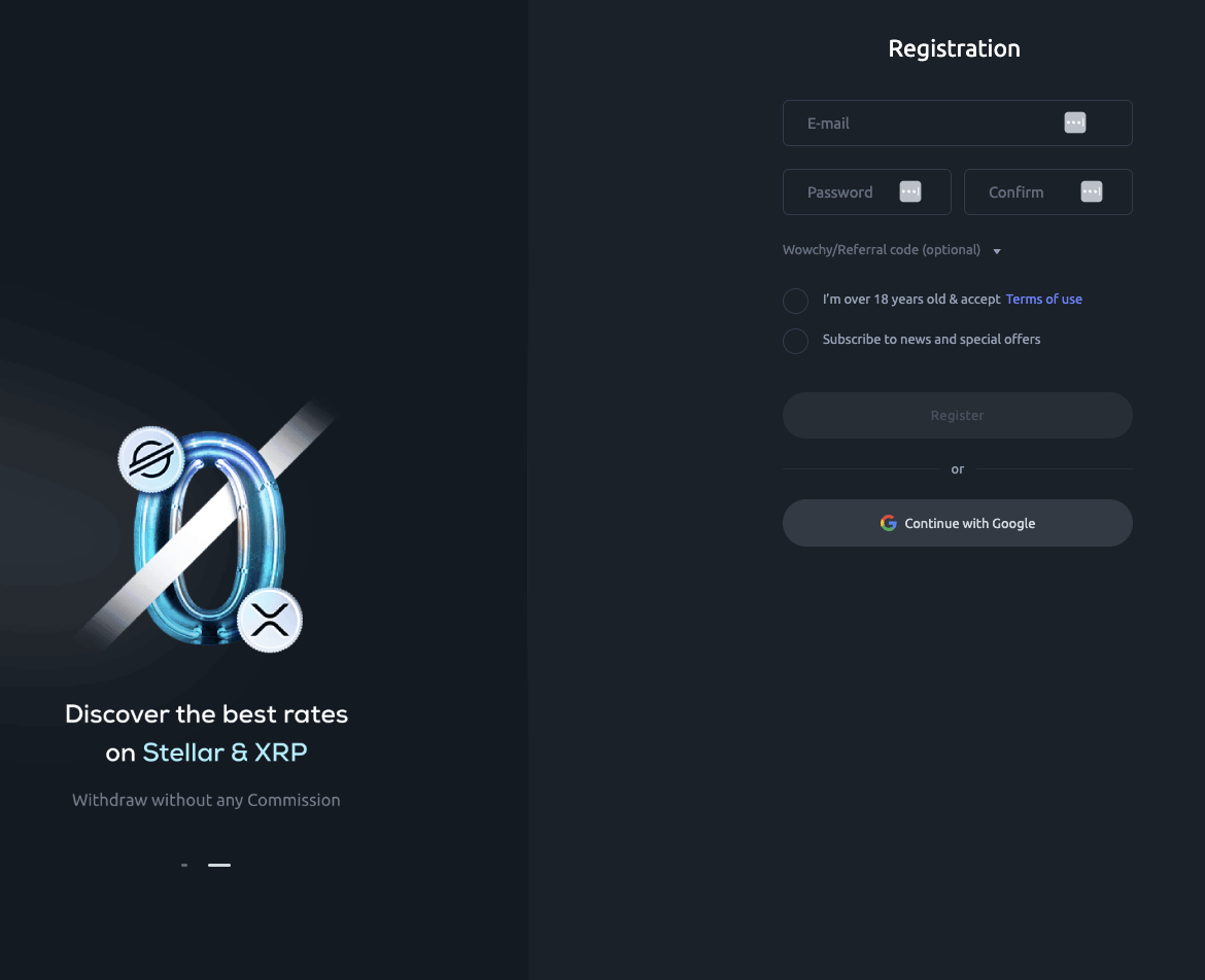 Создать учетную запись на сайте cryptal com можно при помощи e-mail или используя учетную запись Google. После регистрации требуется только подтвердить возраст 18 лет или старше.