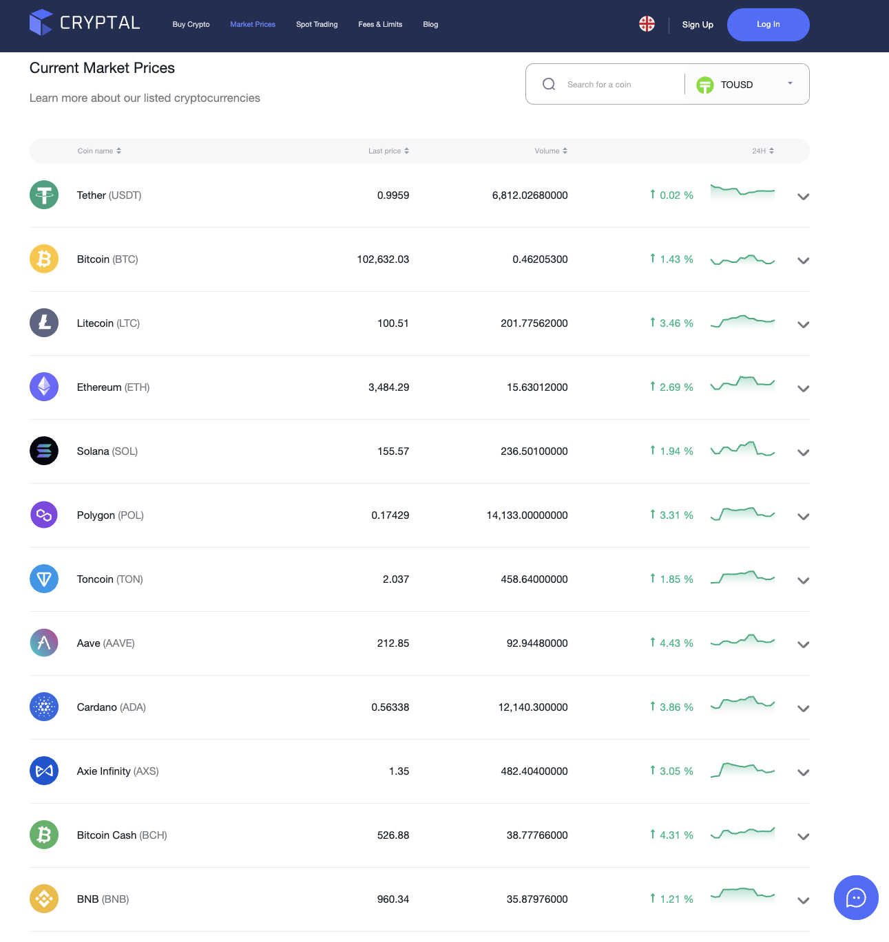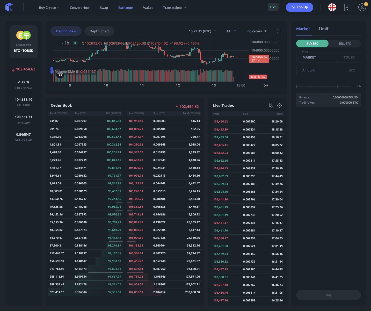 Большой популярностью биржа не пользуется. Средний суточный оборот на ней редко превышает полтора миллиона долларов. Наиболее популярные цифровые активы на бирже Tether, Bitcoin, Litecoin, Ethereum и Solana.