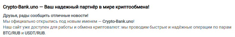 Обзор криптовалютного обменника Crypto Bank: доступные функции площадки Cryptobankuno, репутация и отзывы сервисе от клиентов