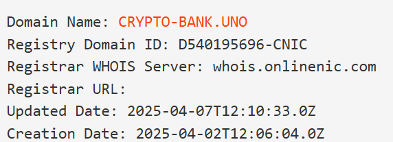 В январе 2026 года сервис доступен по адресу Crypto Bank Uno. Срок жизни этого домена составляет всего несколько месяцев, однако ранее площадка работала под иным названием и на другом адресе. Ее суммарный возраст составляет около 7 лет, что довольно солидно и внушает доверие.
