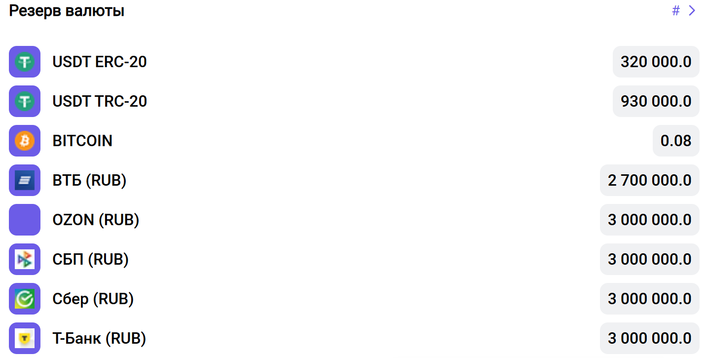 Недостатком Crypto Bank Ws является поддержка ограниченного числа активов. В их числе — только USDT и BTC. Другие криптовалюты в списке отсутствуют. Также доступны ввод и вывод рублей с помощью СБП и карт российских банков: Т-банка, Сбера, ВТБ и OZON. Столь ограниченный «ассортимент» — существенный минус для пользователей.