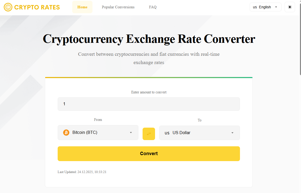 Данные обновляются якобы в реальном времени через API от CoinGecko и FXAPI. Точность можно проверить только сравнением с другими площадками. Никаких гарантий корректности расчетов платформа не дает в своих условиях использования.