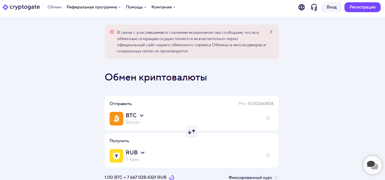 На главной странице обменника пользователей встречает предупреждение о том, что из-за активности мошенников все операции проводятся исключительно через официальный сайт. Никаких обменников в ботах мессенджера у проекта нет.