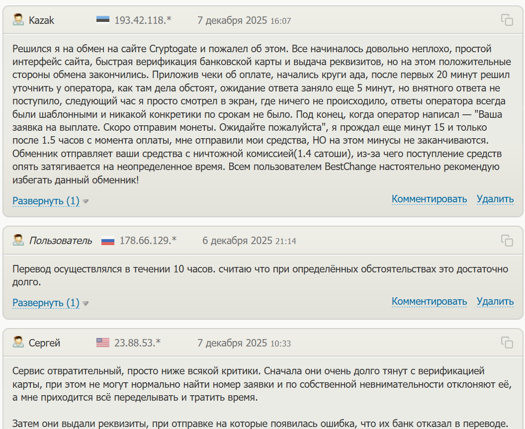 - негативные отзывы о CryptoGate kg от разочарованных клиентов;