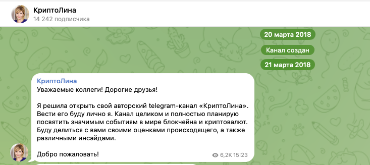Общая информация о канале КриптоЛина