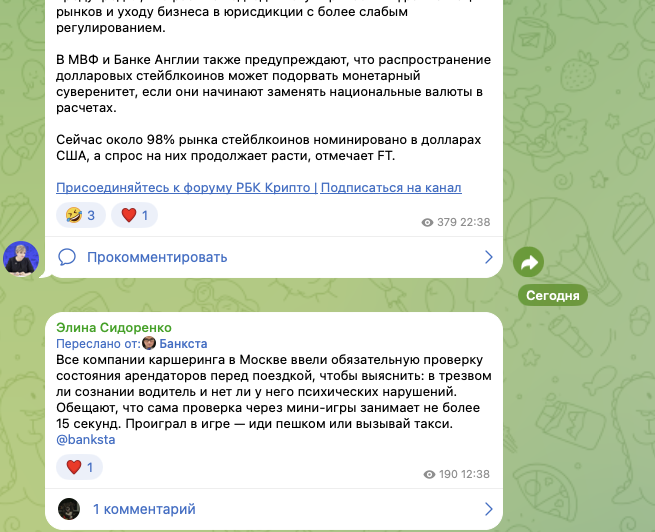 КриптоЛина – канал в Телеграм, который ведет Элина Сидоренко. Автор является государственным, политическим и общественным деятелем, гендиректором платформы ЗаБизнес РФ, профессором МГИМО МИД РФ. В ленте сообщества выкладываются новости цифровой экономики, а также обсуждаются важные законопроекты. В обзоре расскажем о сообществе более подробно.