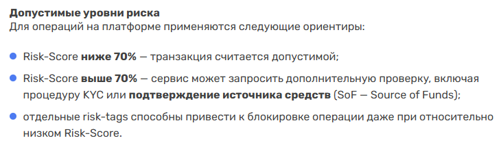 Обменник Cryptonet использует систему Rapira AML для проверки каждой транзакции. Если показатель риска адреса превышает 70%, сервис может запросить KYC-верификацию – видеоселфи с документом, историю вывода с бирж и подтверждение источника средств.
