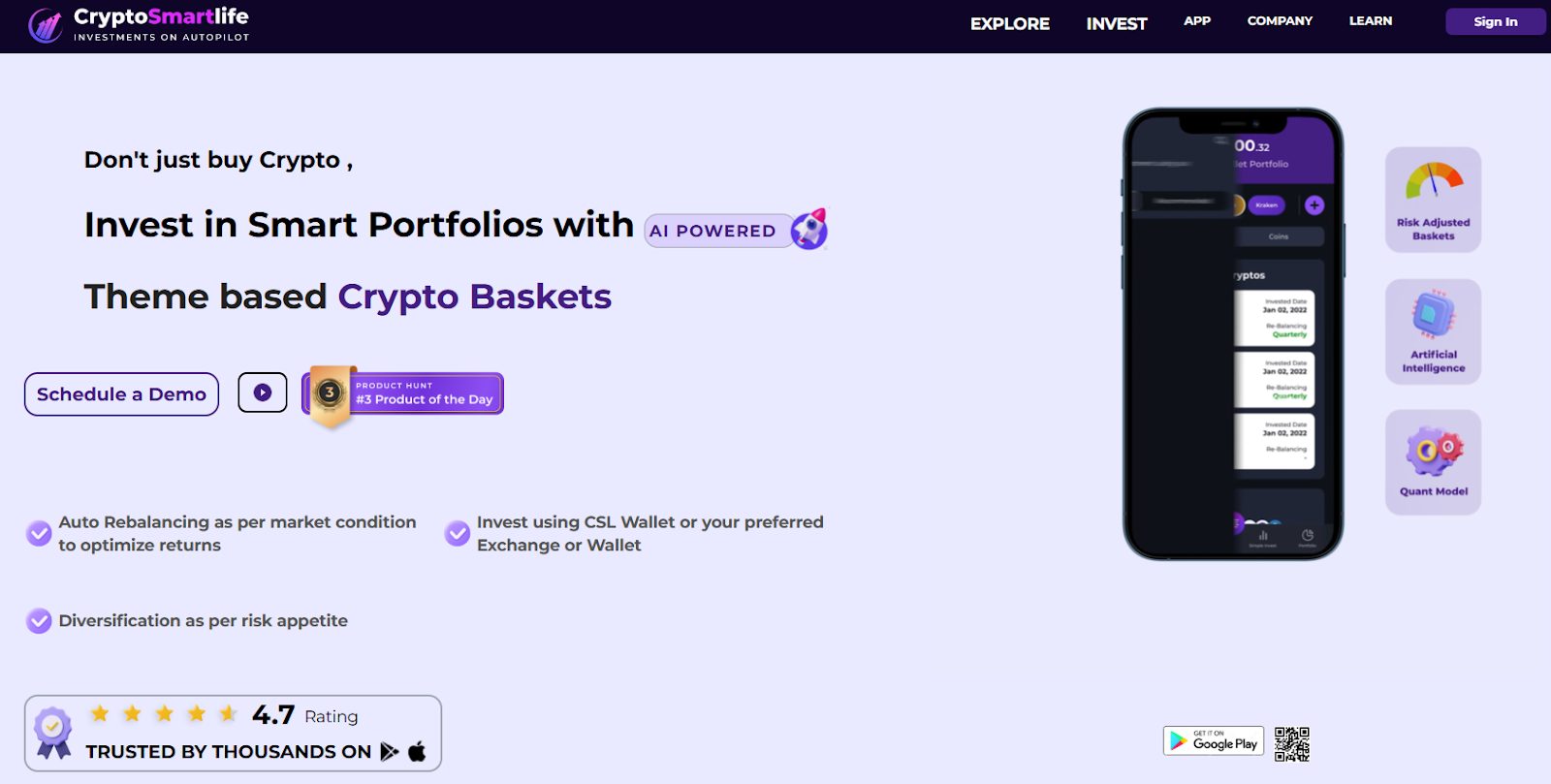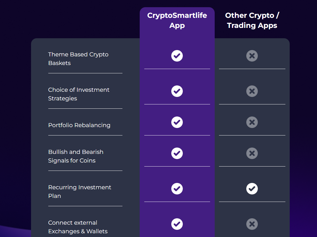 Cryptosmartlife — приложение для отслеживания и составления инвестиционных портфелей в криптовалюте. Оно преподносится как возможность автоматизировать свои инвестиции, получая максимум от роста крипты. По словам разработчиков, является полностью легальным и работает под наблюдением регуляторов.