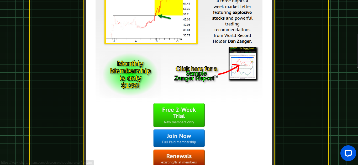 Последнее обновление проекта было 23.04.2024, но непонятно, что трейдер Дэн Зангер поменял в нем, так как сайт остался прежним. Телеграм-каналов у эксперта нет, а месячная подписка на сервис https:/ / www chartpattern com стоит 139 долларов.