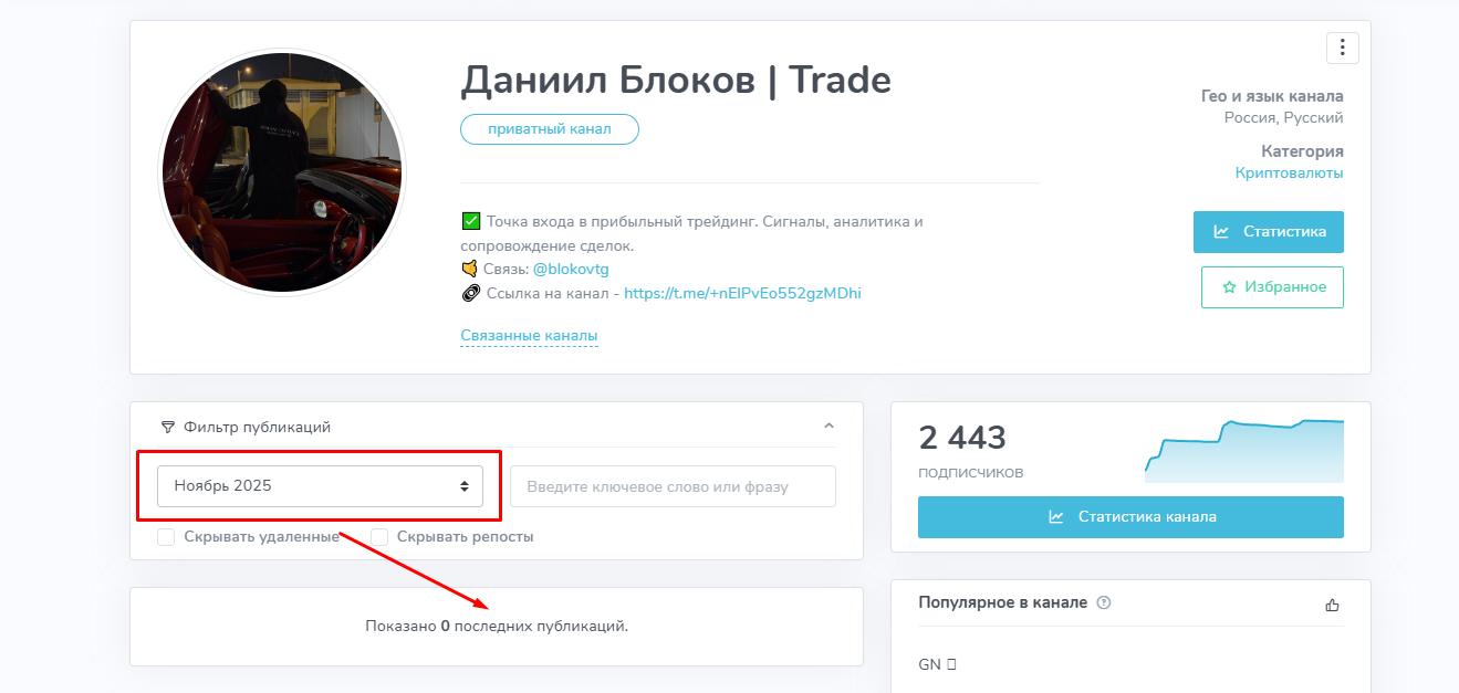 Телеграм канал Даниил Блоков | Trade был создан в начале 2024 года, а на протяжении всего развития проекта, его владельцы менялись. Об этом говорит долгий застой, когда в течение 7-8 месяцев, с мая по декабрь, когда в ленте вообще не выходили публикации. Новые же посты имеют мало общего с предыдущими, структура и манера поведения однозначно менялась. Также менялся способ монетизации / ссылки и продвигаемые платформы.
