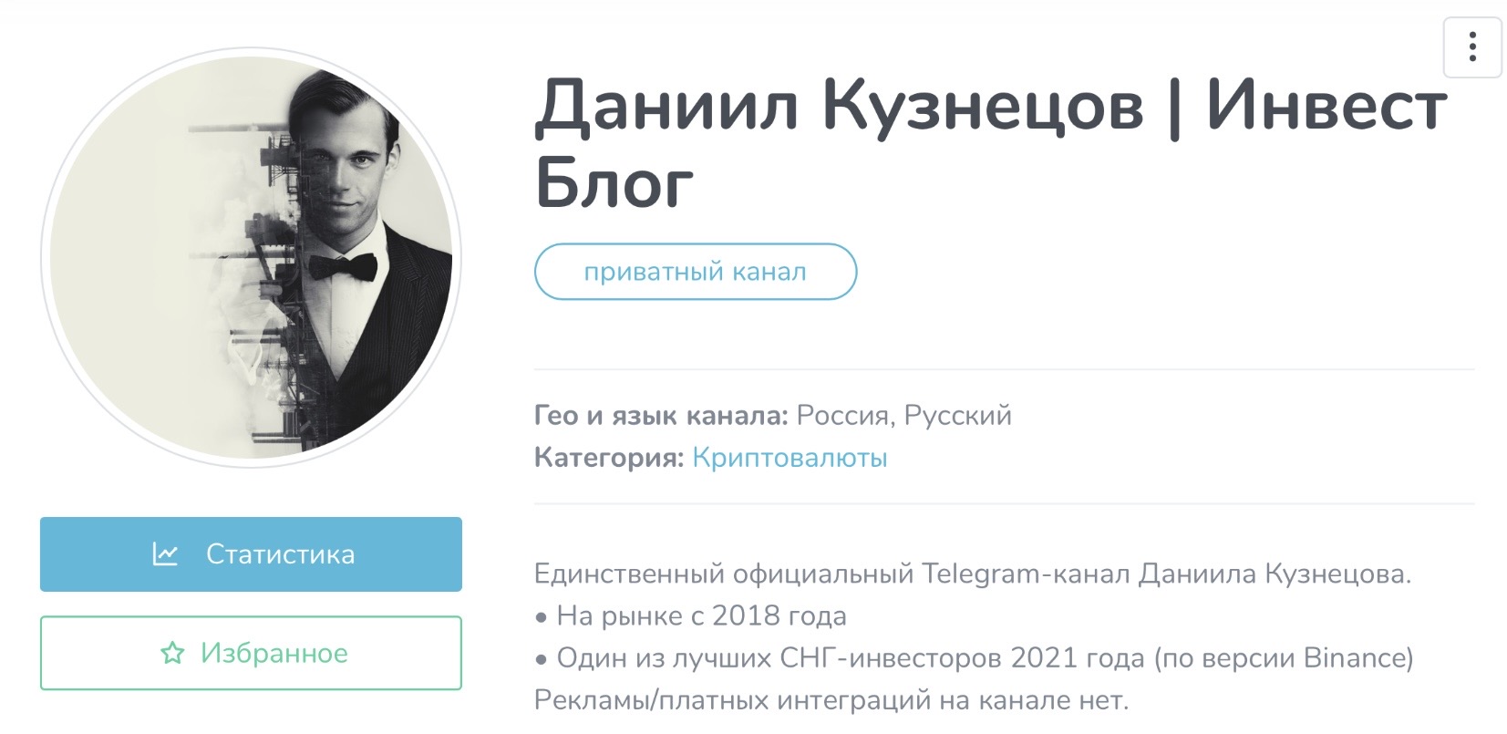В конце апреля канал инвестора Данила Кузнецова выглядит таким образом: