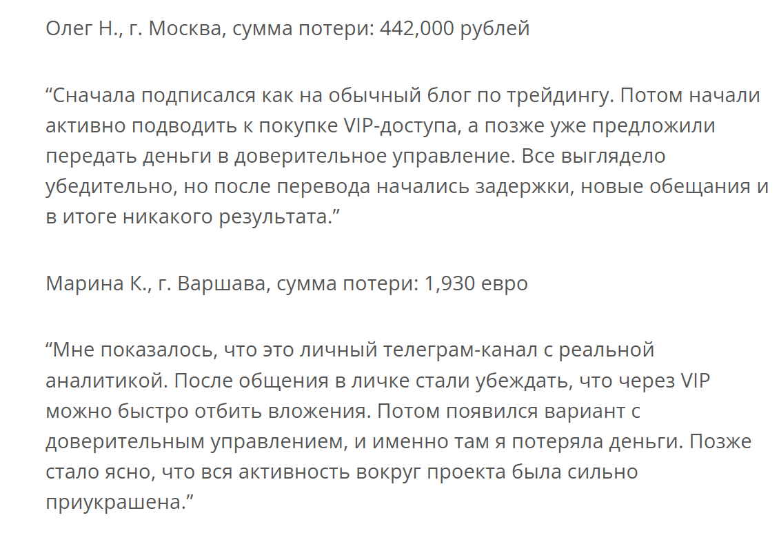 Не исключено, что в процессе личного общения девушка обещает платное обучение, сигналы или другие услуги. Если верить комментариям, иногда клиентам предлагают раскрутку депозита.
