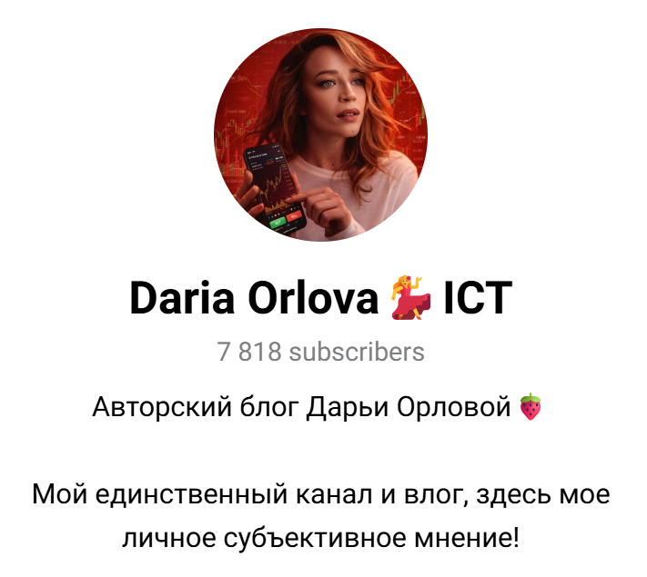 Daria Orlova Ict — ТГ-канал, героиня которого размещает советы по торговле криптой. Она регулярно предлагает поучаствовать в марафонах и пытается продвигать другие услуги при личном общении. При этом к квалификации и опыту Дарьи Орловой возникает много вопросов.