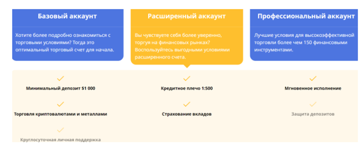 Для удобства клиентов Demdeals разработано три типа счетов – базовый, продвинутый и профессиональный. Стартовый размер депо – 150 долларов, минимальное плечо для маржинальной торговли – 1 к 100, на профессиональном аккаунте предусмотрено страхование депозитов и персональный менеджер.