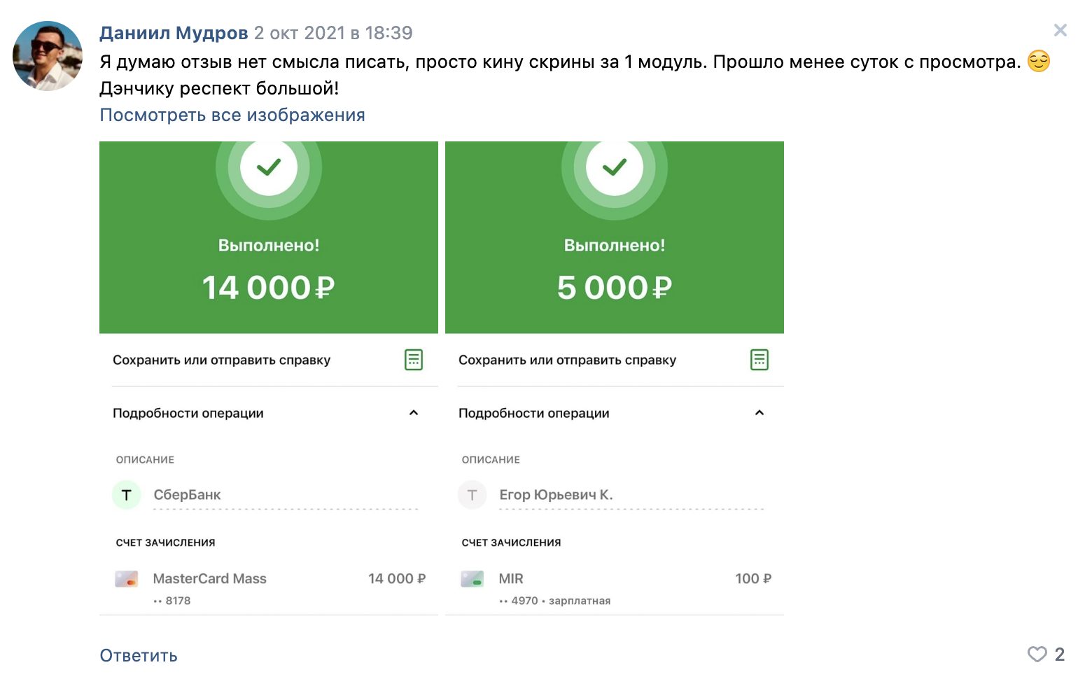 В сети не так много отзывов о курсах Дениса Иванова Дядя Волк от независимых пользователей. Комментарии участников под постами самого проекта в основном положительные, что неудивительно. Многие делятся своими выплатами и успехами. При этом некоторые делают также и замечания по поводу курса.