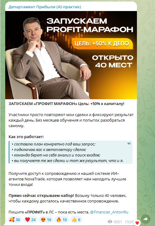Департамент Прибыли AI практик: отзывы о трейдере, какие условия предлагает Антон Инвестор