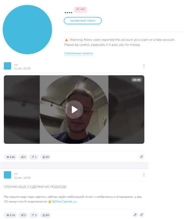 Как правило, после этого все посты с них удаляются, создатели убирают все свидетельства существования своего проекта. Далее каналы переходят некоему Alex ProfitMaker и на них начинается раскрутка депозита.