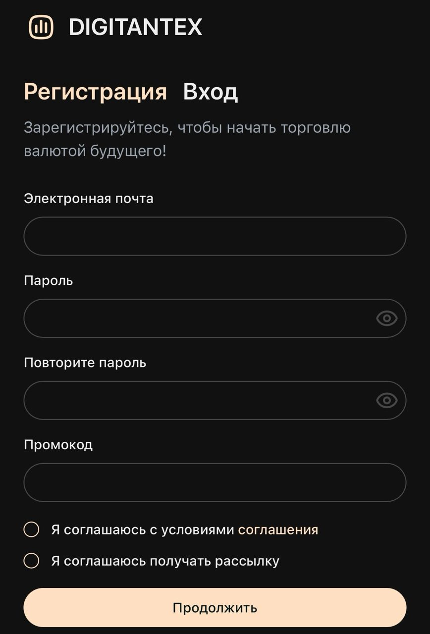 Начнем с того, что платформа позиционирует себя игрой, которую не стоит рассматривать исключительно в целях обогащения. Цель игры – соревнование пользователей в количестве цифровых валют. Также, в правилах есть пункт, что для использования «Диджитантекс» обязательно нужно иметь действующий аккаунт в Телеграме. Весьма странный подход для крупной криптовалютной биржи, которая предлагает заработок на крипте.
