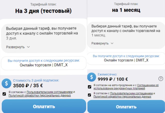 В разоблачении удалось найти несколько тарифных планов на доступ в закрытый клуб Дмитрия. Стоимость трех тестовых дней на площадке – ₽3,500, месяца – ₽9,999.