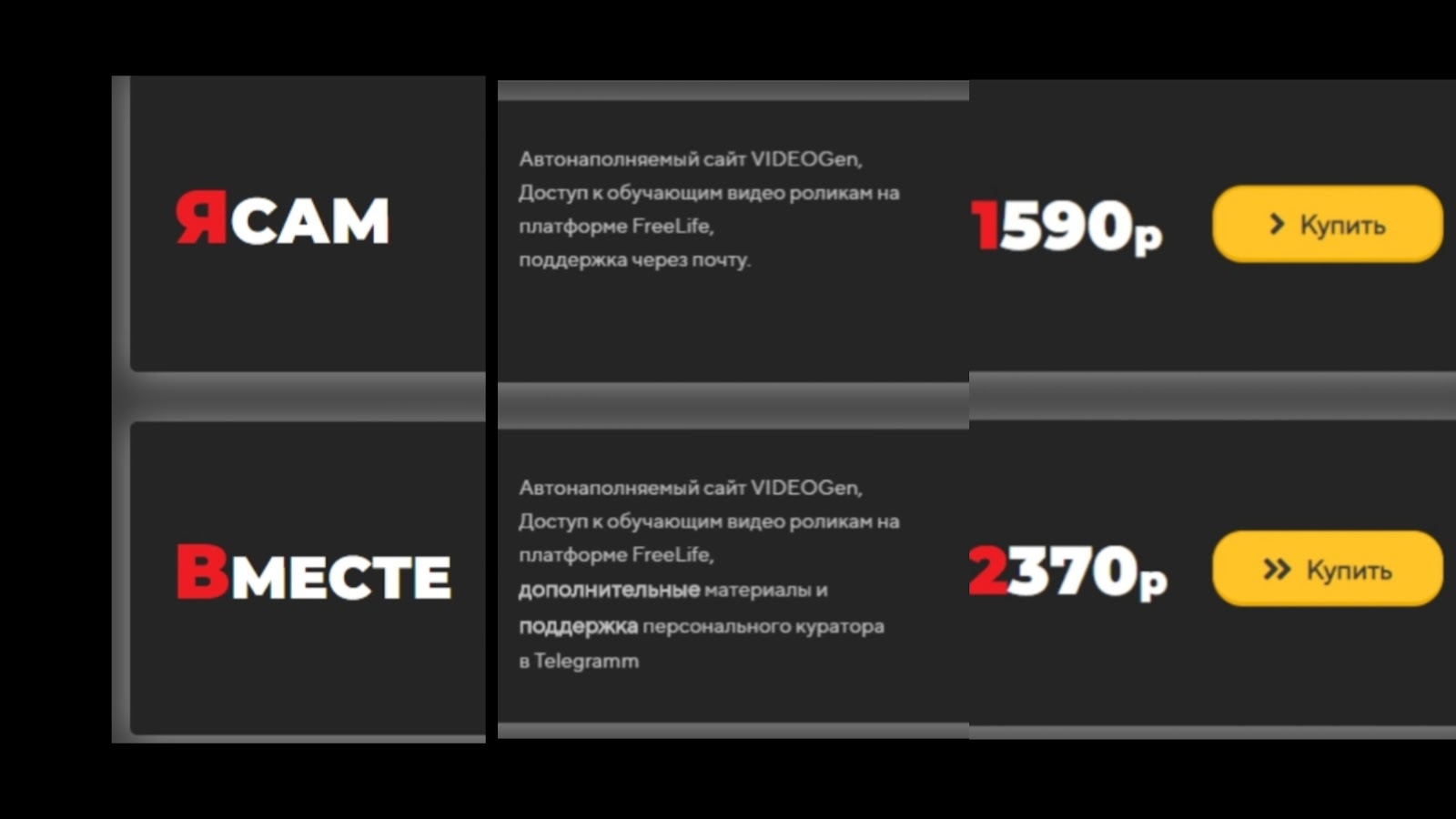 - “Вместе” — цена 2 370 р. Ученики получали дополнительные материалы. Также была гарантирована личная поддержка куратора.