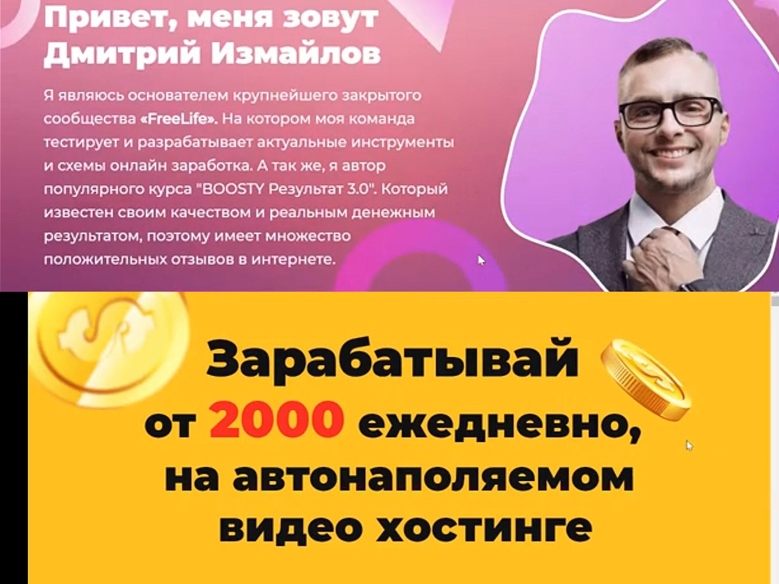 На момент написания статьи курс неактуальный, и Дмитрий Измайлов удалил свой сайт и соцсети. Он предоставлял сомнительные схемы для заработка, и из прочих сведений мы выделили: