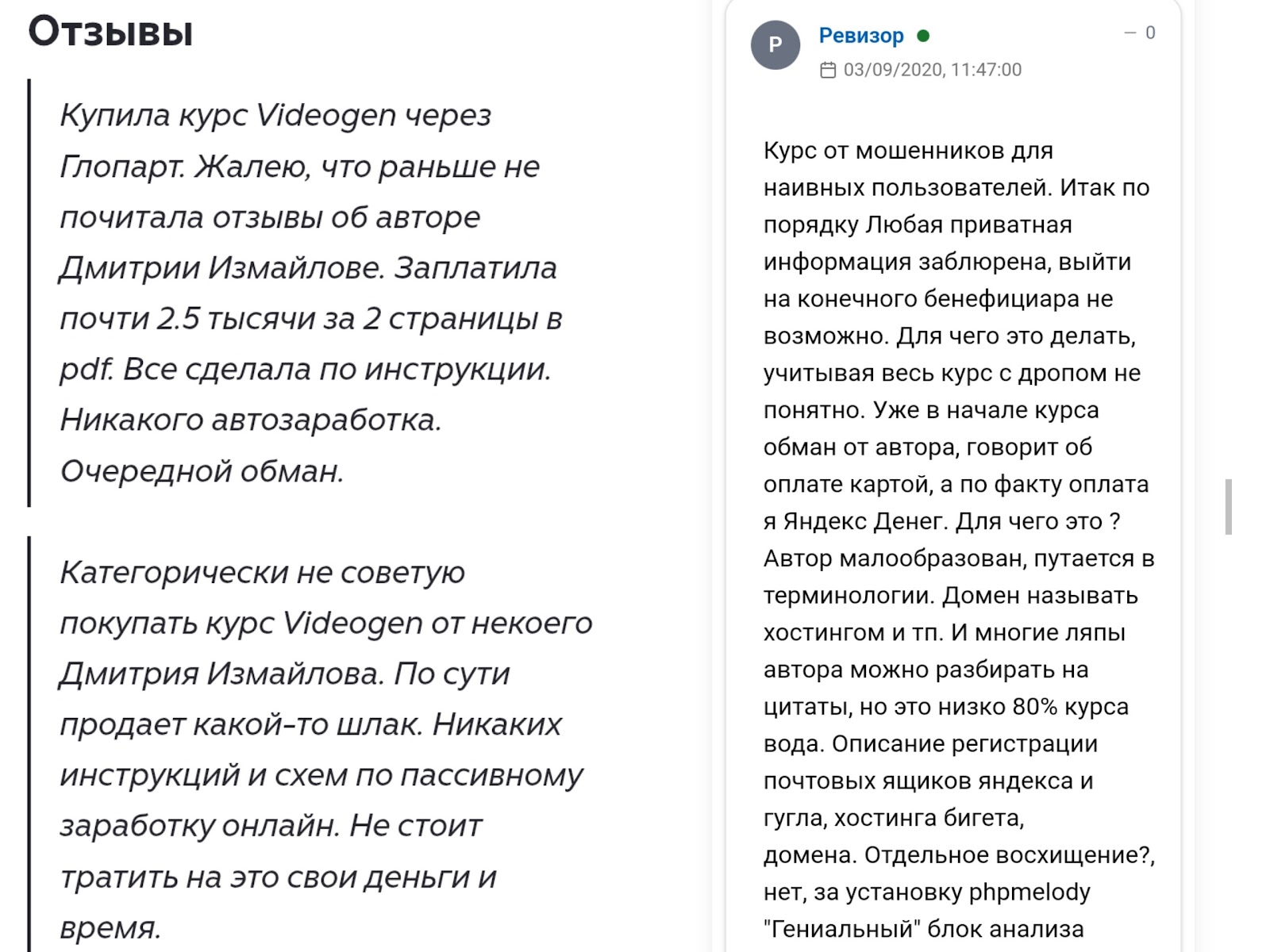 Основатель курса публиковал только положительные высказывания от пользователей. В сети есть комментарии о том, что Дмитрий Алексеевич Измайлов работает по методу мошенников.